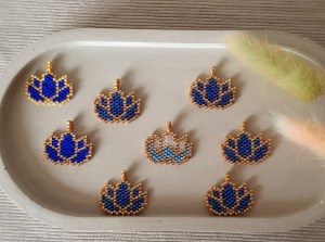 Χειροποίητα κοσμήματα με χάντρες miyuki σε σχήμα λωτού σε διάφορα χρώματα.