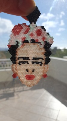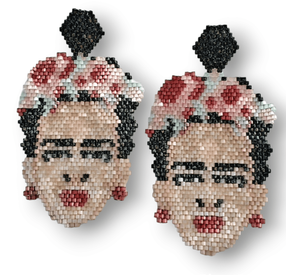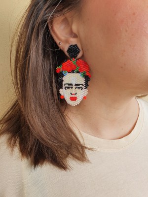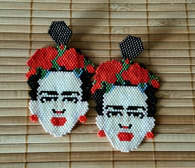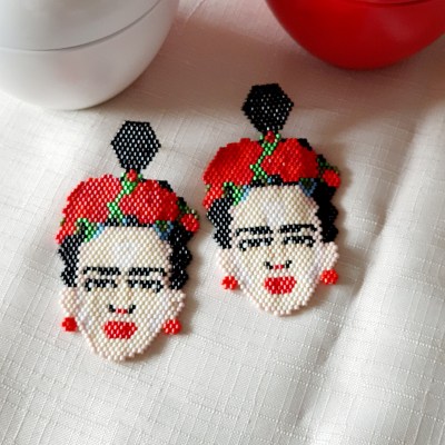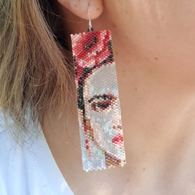 Χειροποίητα σκουλαρίκια με χάντρες miyuki delica Frida Kahlo. Τα εξαρτήματα που χρησιμοποιούνται είναι ατσάλινα.