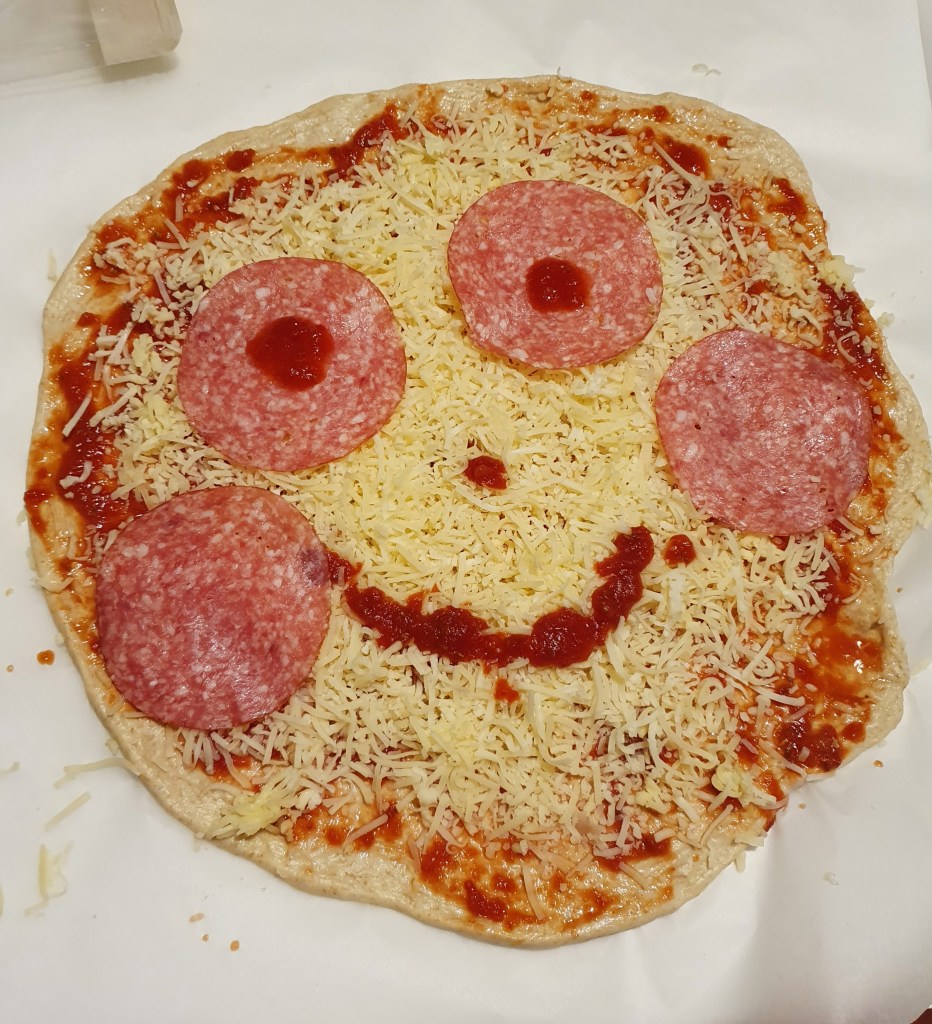 Ανακατεύεις τα υλικά και ζυμώνεις για περίπου 5 λεπτά με τα χέρια. Αφήνεις το ζυμάρι 1 ώρα σκεπασμένο με μεμβράνη και πετσέτα απο πάνω και απο κάτω για να διατηρήσει την ζεστασιά απο το χλιαρό νερό. Μόλις θα διπλασιαστεί ο όγκος του είναι έτοιμο. Το μοιράζεις σε 4 ίσα μέρη και ανοίγεις με τα χέρια σου σε στρογγυλό σχήμα το κάθε κομμάτι σε μια λαδόκολλα. Βάζουμε 4 κουταλιές σάλτσας στην κάθε πίτσα, τυριά περίπου 200γρ στην κάθε πίτσα και τα αλλαντικά της επιλογής μας. Ψήνουμε στους 1800 C με αέρα (και αντίσταση απο κάτω θέλει ο δικός μου φούρνος) για περίπου 12 λεπτά μέχρι να ροδοκοκκινίσουν τα τυριά.